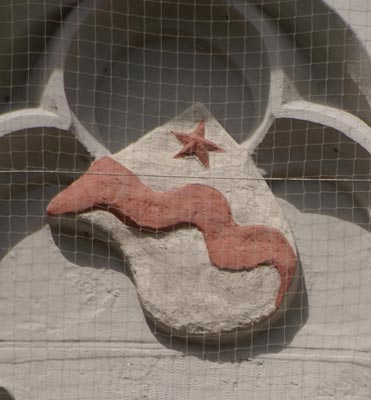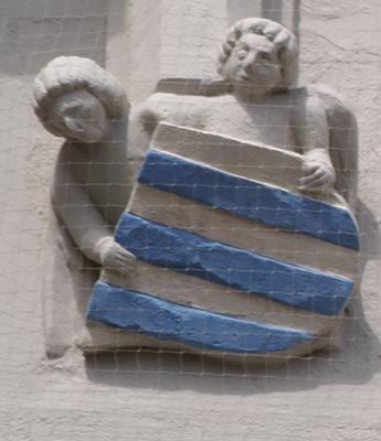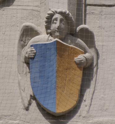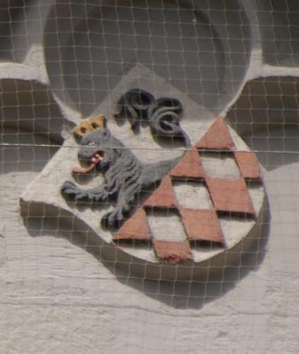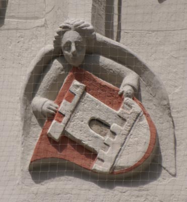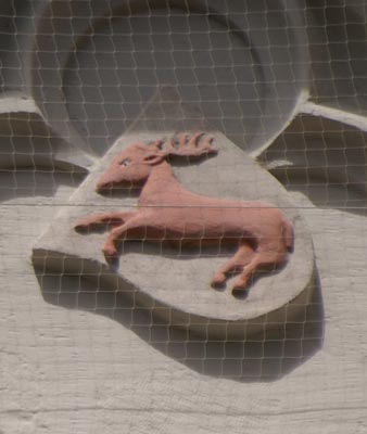 Wappen des mittleren Frieses vor der Renovierung 2007 (Vorher-Zustand):
