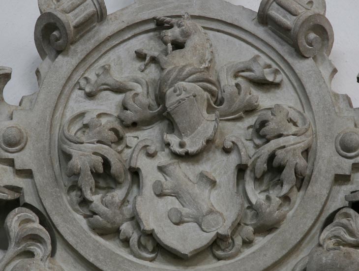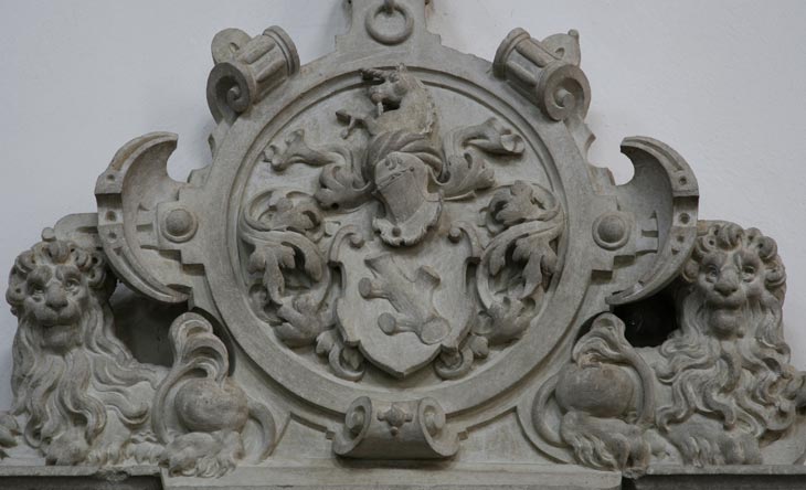 In diesen unsicheren Zeiten also floh Gebhard nach Boppard und nahm dort am 25.6.1597 eine Stelle als landgräflich hessischer Zollbeamter an. Er wohnte im landgräflich hessischen Hof, den er zu seinem Amt verliehen bekommen hatte. Und von Boppard floh er nach Kastellaun, weil in ersterer Stadt die Pest grassierte. Da seine Tochter hierhin geheiratet hatte, suchte er vermutlich in ihrem Hause Zuflucht. Er verstarb in Kastellaun an einem Leistenbruch. Seine Witwe, die in zweiter Ehe Dr. Johann Reinhard Freinsheimer aus Boppard heiratete, gab dieses prächtige Epitaph in Auftrag. Von Gabriel Eschenfelder ist auch noch eine Grabplatte fragmentarisch erhalten.